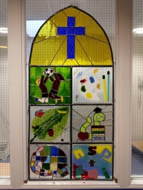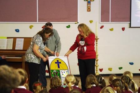 Marilyn presented a stained glass window to the school as a leaving gift.