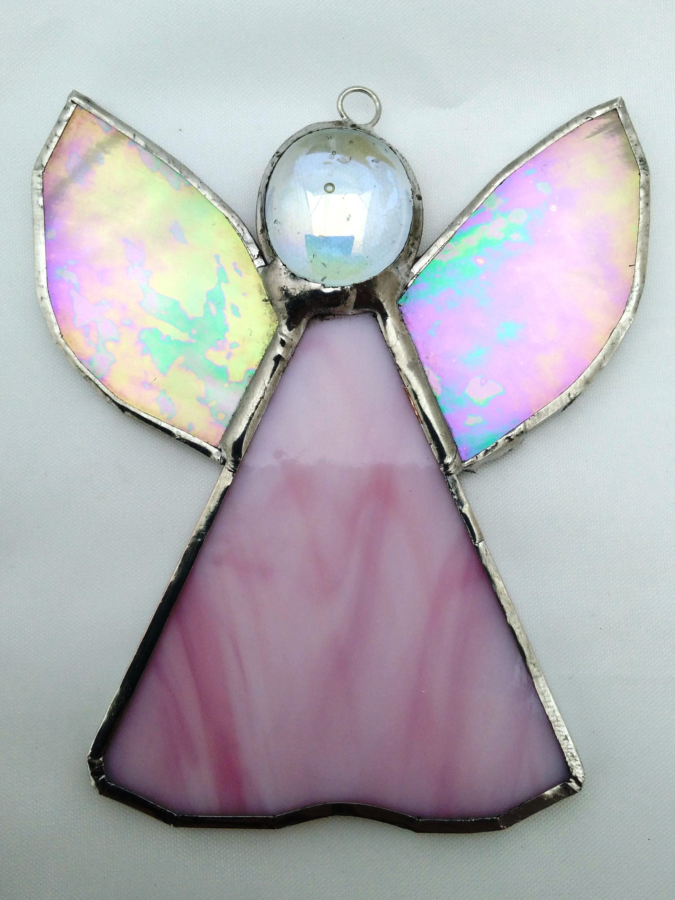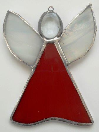 An Angel Suncatcher, Red, Blue and Pink versions shown.